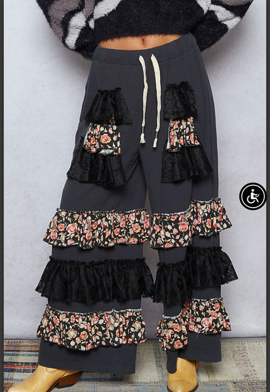 A Rare Bird Velvet Ruffle pant XL